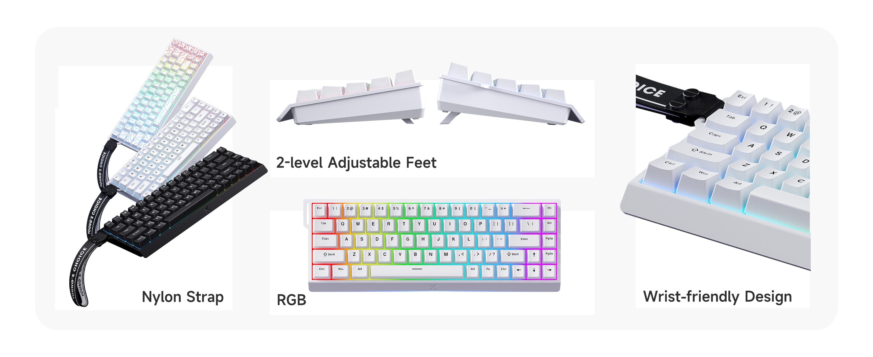 | Package | 1* Ace68 Keyboard, 1*Strip, 1* User Guide, 1* Type-C Cable, 1* Puller, 2* Spare Switches, 1* Dust Cover | ||||||